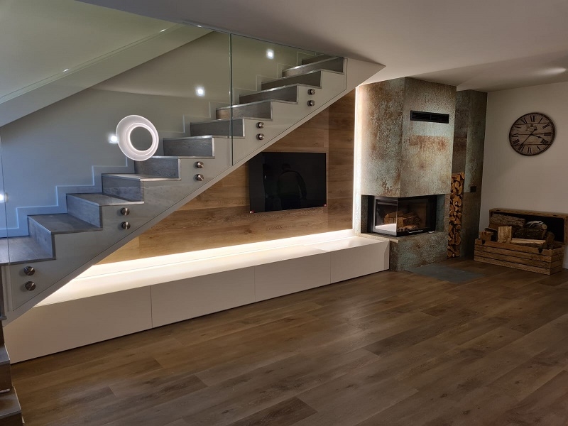 Mobile in rovere massello con porta bottiglie parte superiore