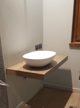 Mobile bagno in rovere sbiancato con n° 2 cassetti frontali, lavabo appoggio e fissaggio sospeso