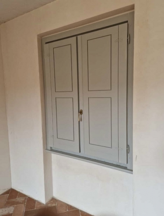 Persiane tipo centro storico in pino lamellare laccato tinta ral