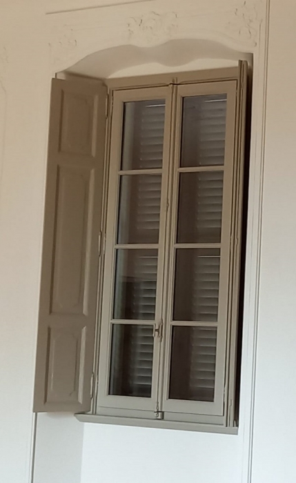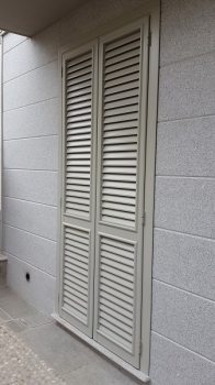 Persiana tipo Centro storico con antello tipo Genovese in pino lamellare laccato ral