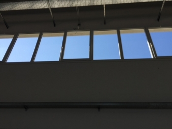 Finestra in pino lamellare mm. 68 laccato Ral con apertura scorrevole alzante 1 anta fissa + 1 anta scorrevole