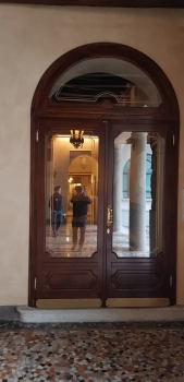 Ante d'oscuro interne in rovere massello intelaiato liscio sagomati con accessori ottone brunito