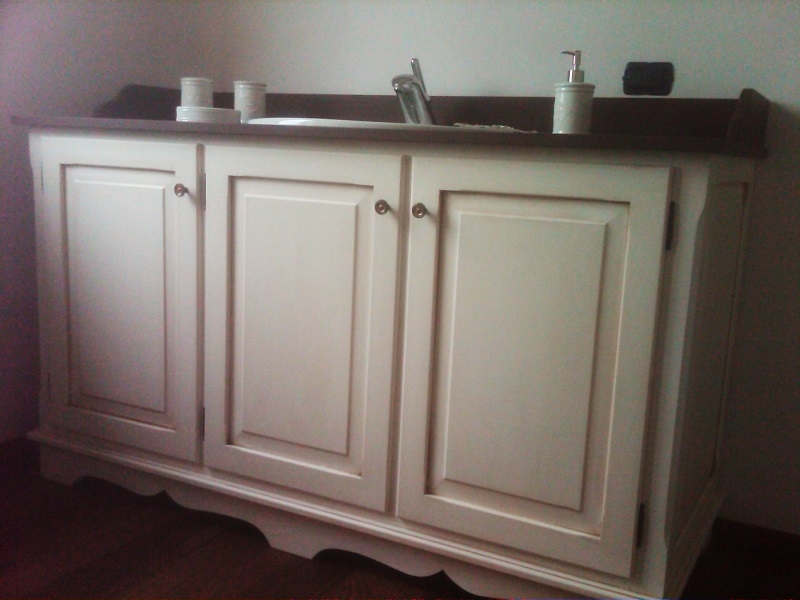 Mobile bagno in mdf laccato bianco con ante ricurve e cassetti