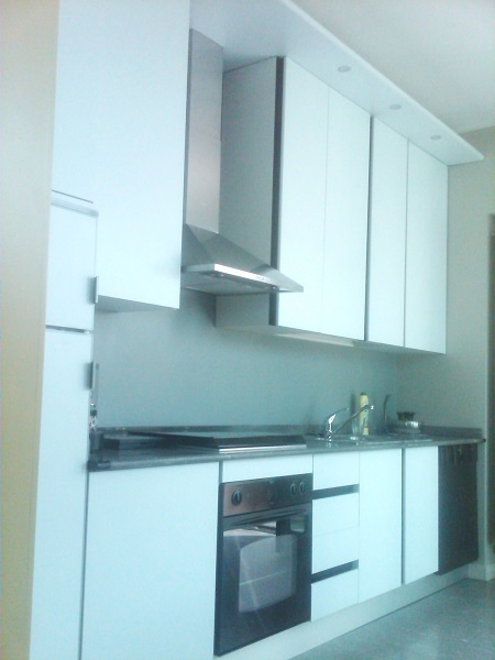 Mobili cucina in mdf laccato lucido con piano top in acciaio