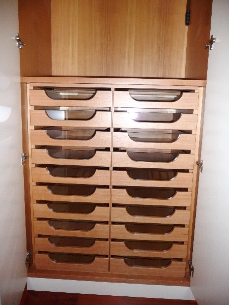 Cassettiera interna mobile con cassetti a frontale trasparente per camiceria