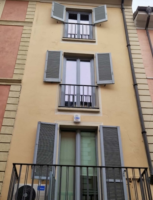 Persiana tipo Centro storico con antello tipo Genovese in pino lamellare laccato ral