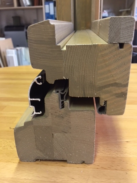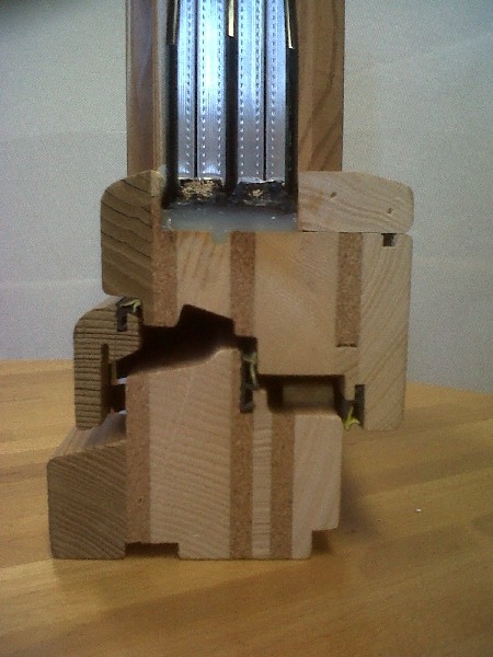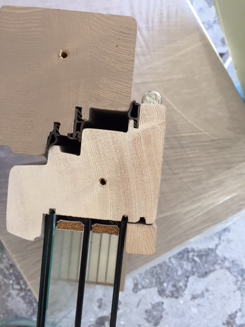 Finestre collezione Tecnologia mod. Double System legno lamellare+sughero+alluminio.