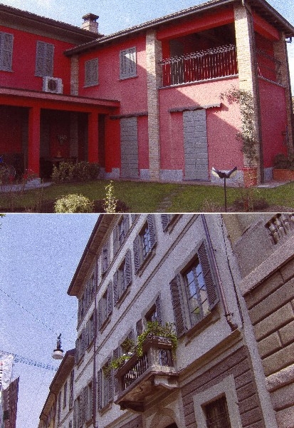 finestre mod. Top 68/06 in pino lamellare laccato tinta Ral con fuseruoli tipo Lombardo, griglie pino lamellare mm. 45 centro storico laccate tinta ral a murare con accessori finitura nero