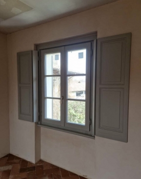 Persiane tipo centro storico in pino lamellare laccato tinta ral